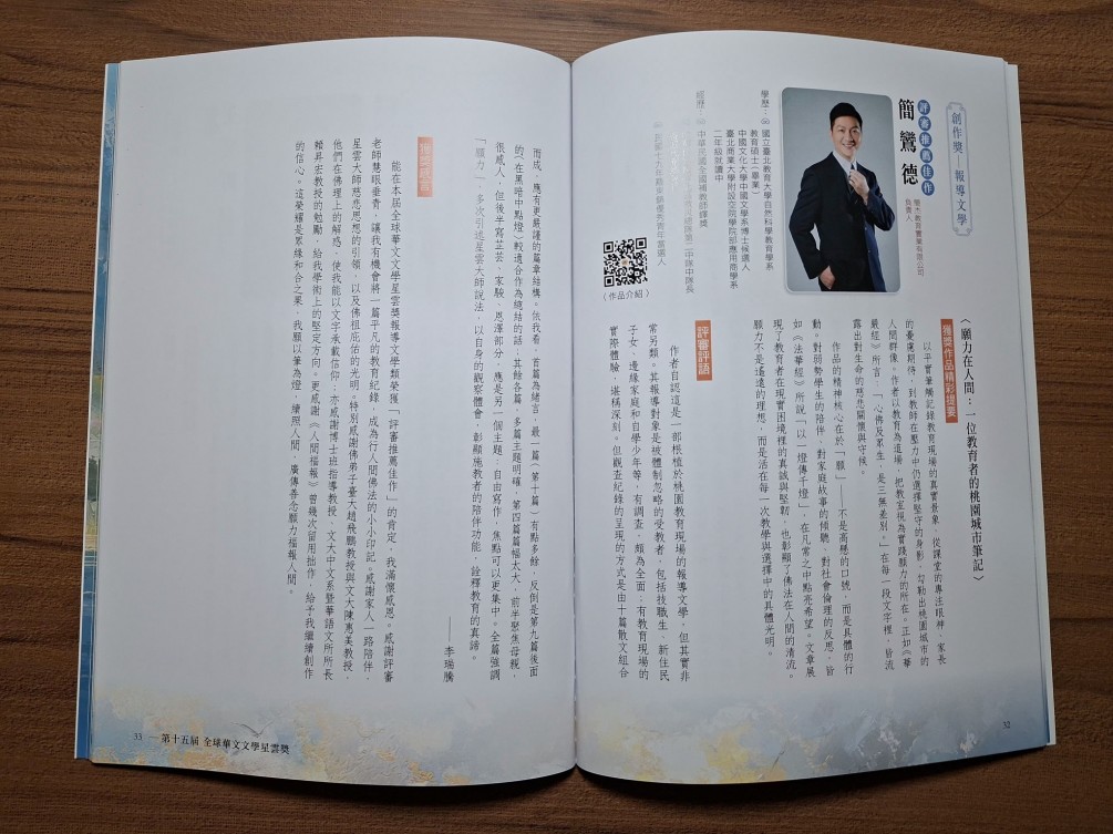 簡鸞德老師榮獲 全球華人文學星雲獎