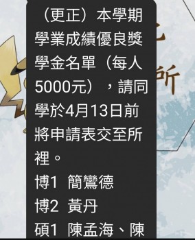 └ 榮獲「優良博士生」暨「論文期刊刊登獎學金」